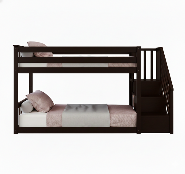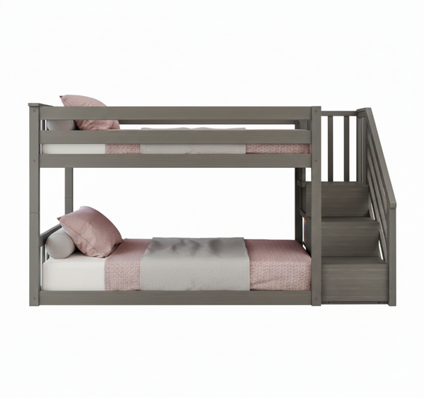 Seguridad Primero: Incluye barandillas de protección en la cama superior y una sólida escalera integrada para un acceso fácil y seguro.