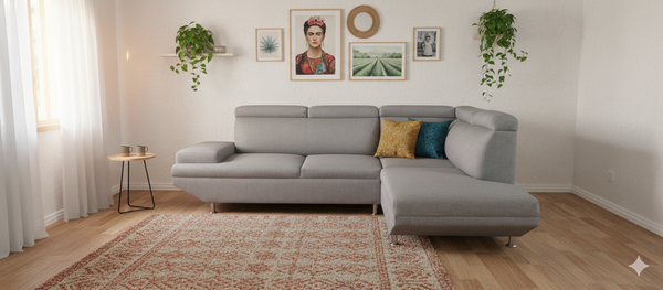 Diseño Seccional Versátil: Ideal para aprovechar esquinas o dividir espacios en departamentos modernos.